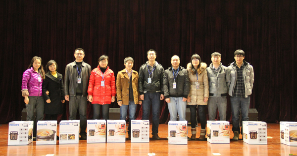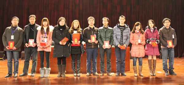 紅梅含苞傲冬雪,綠柳吐絮迎新春!時(shí)值蛇年春節(jié)即將來(lái)之際,徐建平董事長(zhǎng)、王國(guó)祥董事及公司全體干部職工于2013年1月30日上午齊聚西區(qū)產(chǎn)業(yè)園1號(hào)樓301會(huì)議室,共同舉行成都天奧電子股份有限公司2012年度總結(jié)表彰會(huì),會(huì)議由公司副總經(jīng)理李河川主持。頒獎(jiǎng)儀式作為大會(huì)第一項(xiàng)內(nèi)容在歡快的音樂(lè)聲中徐徐展開(kāi),李總宣讀了公司關(guān)于表彰2012年度突出貢獻(xiàn)獎(jiǎng)、重大項(xiàng)目爭(zhēng)取獎(jiǎng)、技術(shù)創(chuàng)新獎(jiǎng)、生產(chǎn)改進(jìn)獎(jiǎng)、“三化”設(shè)計(jì)獎(jiǎng)及先進(jìn)個(gè)人等的決定,并由徐建平董事長(zhǎng)、王國(guó)祥董事及公司各高管隆重地為各獲獎(jiǎng)?wù)哳C發(fā)了榮譽(yù)證書(shū)。