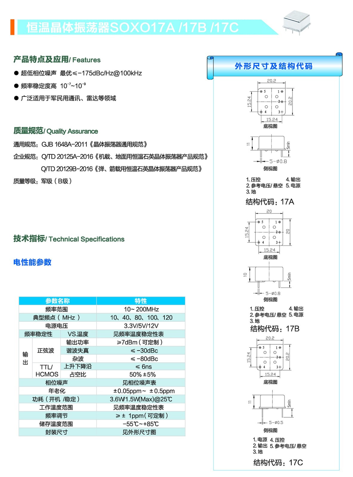 恒溫晶體振蕩器SOXO17A/17B/17C