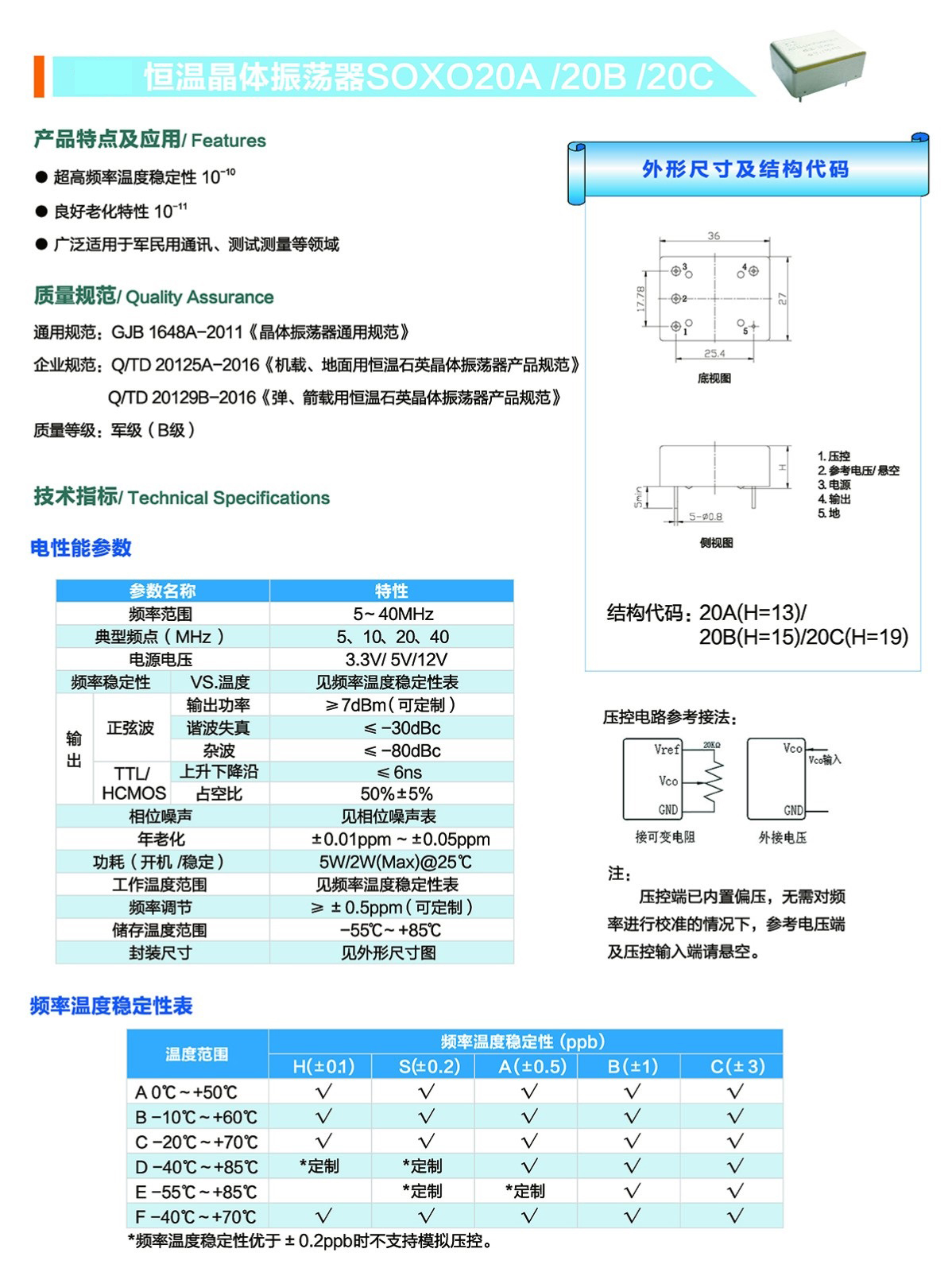 恒溫晶體振蕩器SOXO20A/20B/20C