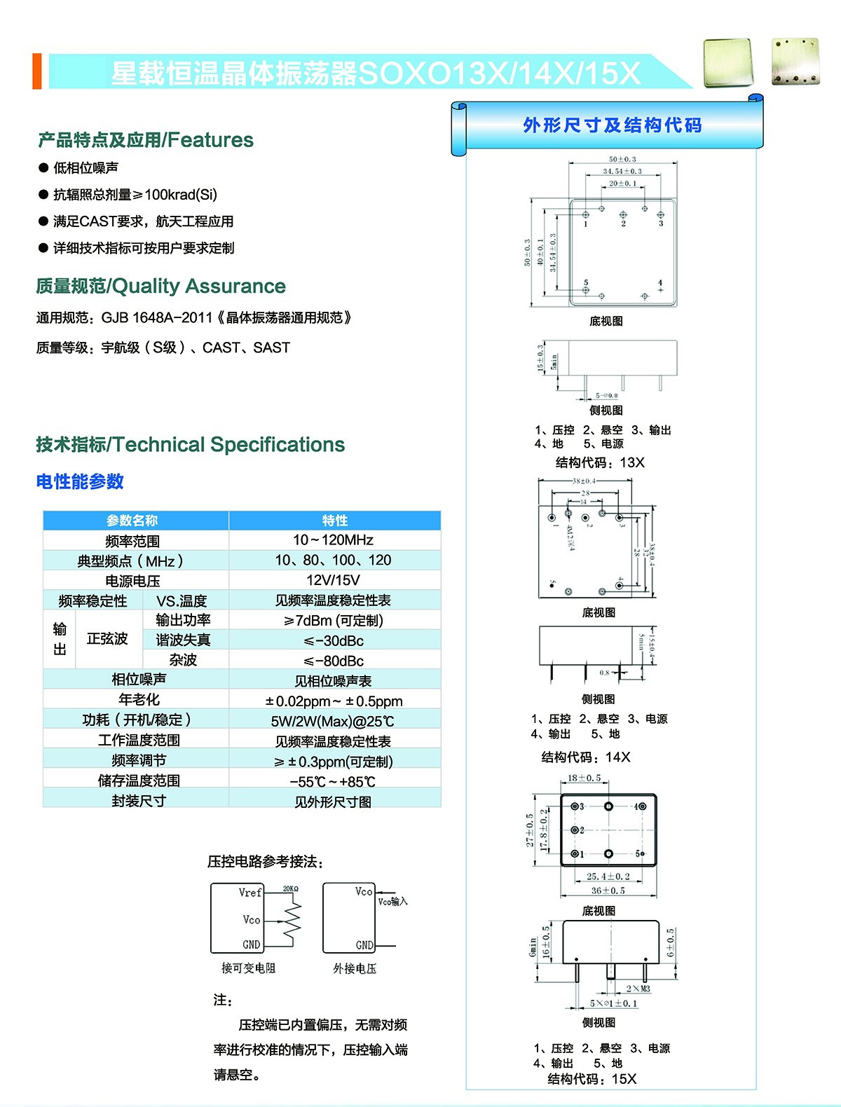 星載恒溫晶體振蕩器SOXO13X/14X/15X