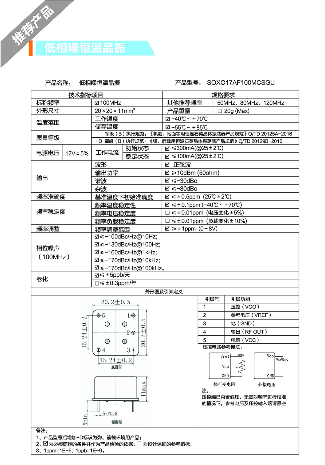 低相噪恒溫晶振SOXO17AF100MCSGU