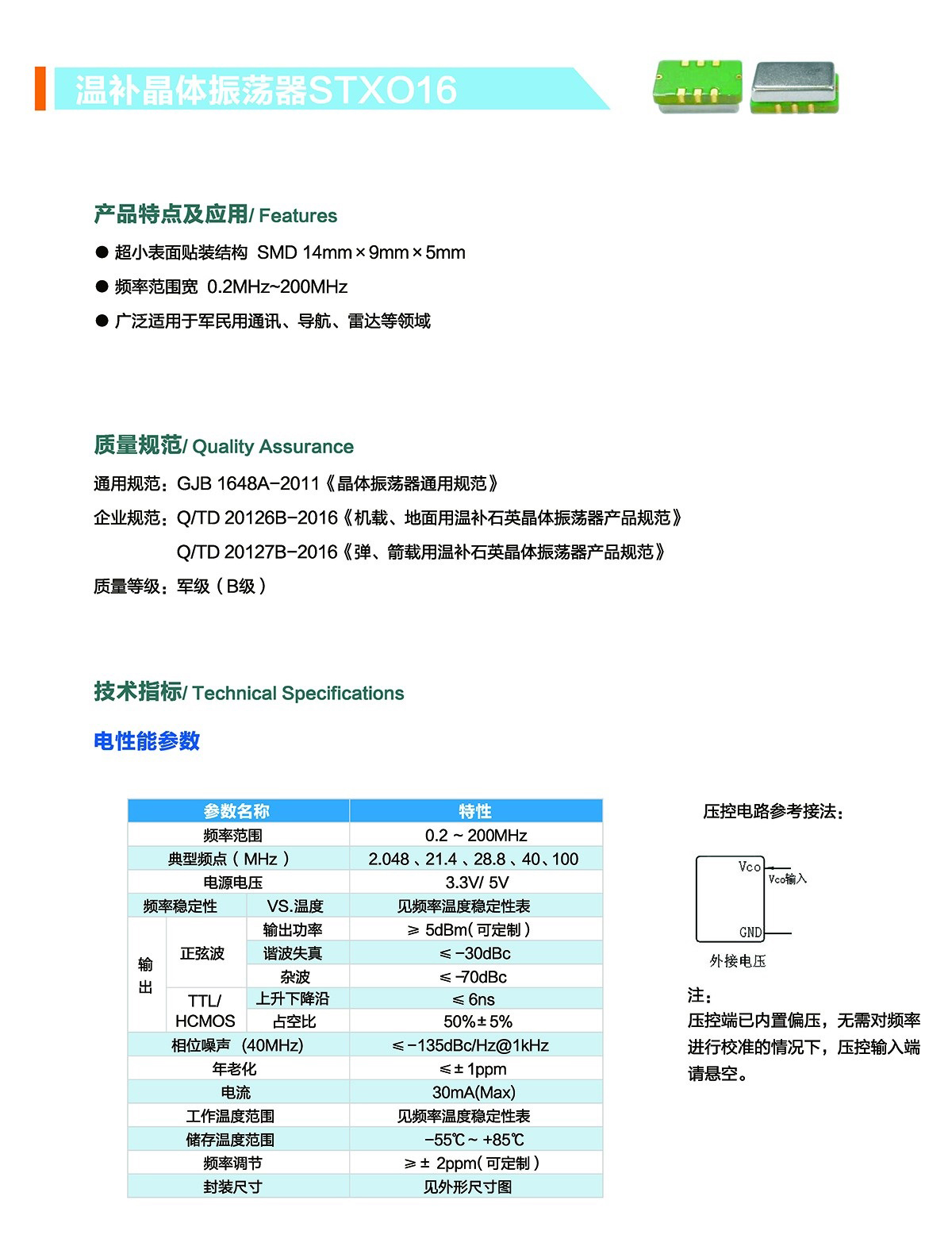 產(chǎn)品名稱:溫補(bǔ)晶體振蕩器STXO16